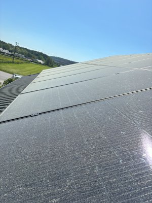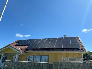 Här ser ni förra veckans montage av solpaneler på en villa i närområdet. Totalt 28 st paneler på villataket och 10 paneler på garagetaket. Panelerna är glas/glas med 30 års produkt och....