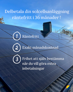 Är du intresserad av att skaffa solceller men tycker att det är en för stor investering? Vår samarbetspartner Wasakredit erbjuder räntefri avbetalning i 36 månader! Detta är ett smart sätt....